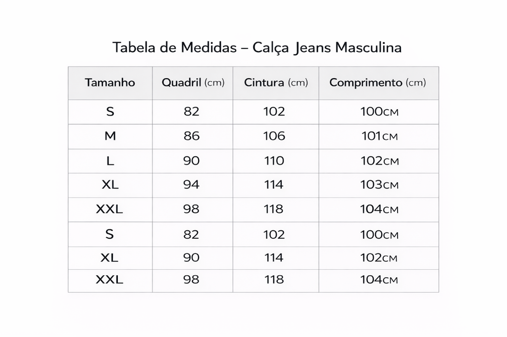 📌 Recomendamos verificar suas medidas antes da compra para melhor ajuste.